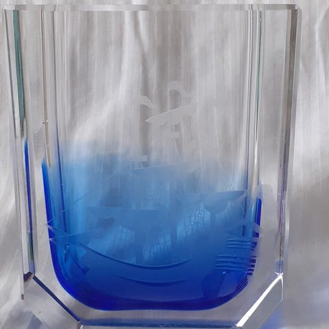 Myydään Gus-krystalnyn Syvän koboltin sininen maljakko. Käsin puhallettu ja hiottu.