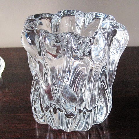 Tapio Wirkkalan suunnittelema Kalvolan kanto lasimaljakko, korkeus 9 cm. Hyvä kunto.