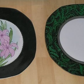 Siistikuntoinen jalallinen tarjoilu lautanen.