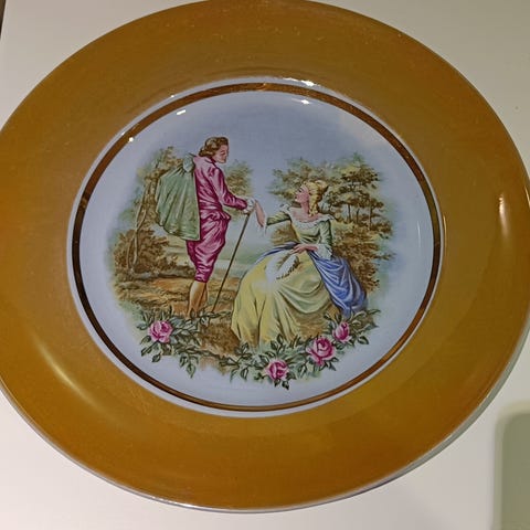Yhteensä neljä lautasta, joista kaksi arabian Romantica sarjan ns murolautasta + arabian lautanen, jossa hedelmä/kukka kuva + yksi pieni lautanen