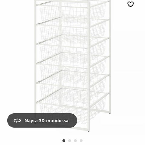 Ikean ritiläkoreilla varustettu säilytyskokonaisuus. Oli meillä osana suurempaa Jonaxel kokonaisuutta, mutta tämä ei enää sopinut uuteen tilaan. Siisti, mutta toki käytetty kunto. Vetokorot toimii kaikki hienosti.