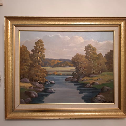 R. vuolas öljy kankaalle. Ulkomitat: 69x69cm.