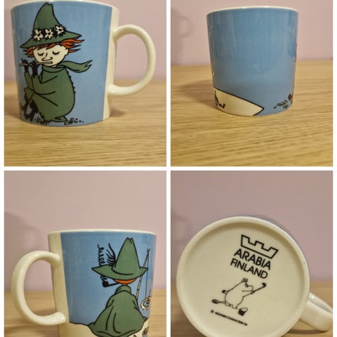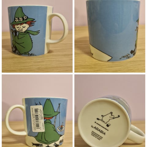 Tuotannosta poistunut, käyttämätön ja tarrallinen Nuuskamuikkunen muki. Postituskulut ostajalle.