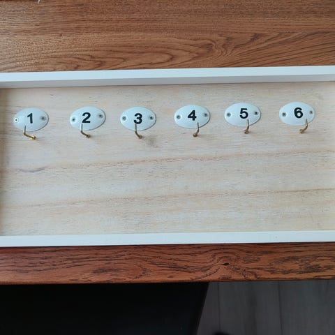 Musta talo avainnaulakko. 6 koukkua. Ovi pysyy kiinni magneetilla. Kiinnitys seinään kahdella ruuvilla. Ollut käytössä noin puoli vuotta.
