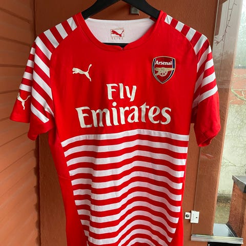 Arsenalin kauden 2014-15 kotipelipaita. Koko M, melko napakka fit. Ostettu paikan päältä Lontoosta. Printissä pienen pientä kulumaa, muutoin moitteettomassa kunnossa.