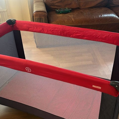 Myydään hyväkuntoinen musta lasten matkasänky. Mukana tulee lisäpatja kantolaukussa.