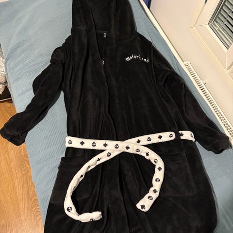 lämmin pehmeä motörhead kylpytakki, koko s/m. Kunnossa ei moitteita, tosin kissankarvoja saattaa tulla hiukan mukana. ovh 60€