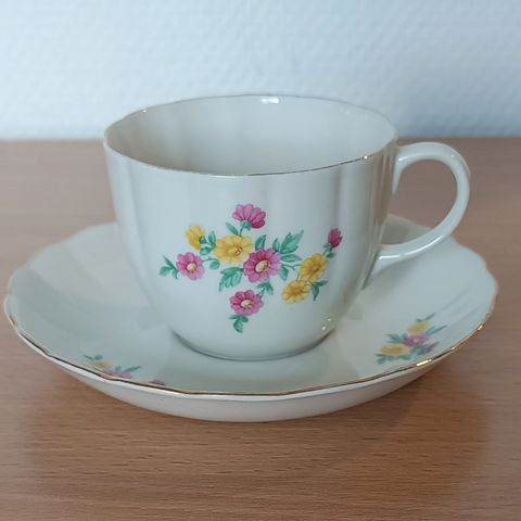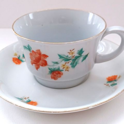 Ruusukuvio ja teksti mummunkuppi sininen raita kupissa ja lautasessa hieno keräily esine en postita vain nouto