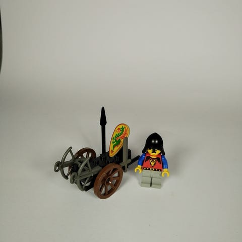 Lego Castle 6023 setti vuodelta 1986. Kaikki osat tallessa. Toisen ukon paita kulunut ja likainen. Ukkojen kyljet ehjät.