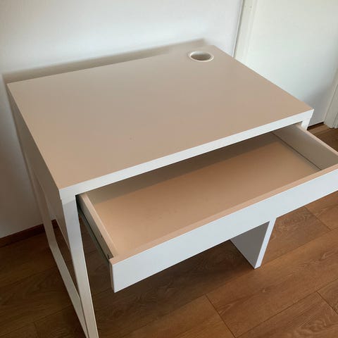 Ikean jämäkkä Hemnes työ-/tietokone kulmapöytä. Kulumaa etualalla (katso kuvat). Itse laittaisin listan peittämään kulumaa. Edelleen hyvin jämäkkä.