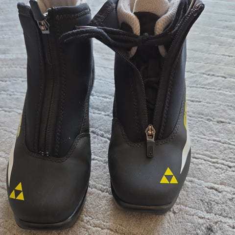 Fischer lasten hiihtomono, koko 31. Väri musta ja harmaa. Materiaalina synteettinen materiaali. Sisältää vetoketjullisen suojan ja nauhoituksen. Kosmeettista jälkeä, ei haittaa käyttöä, huomioitu hinnassa.