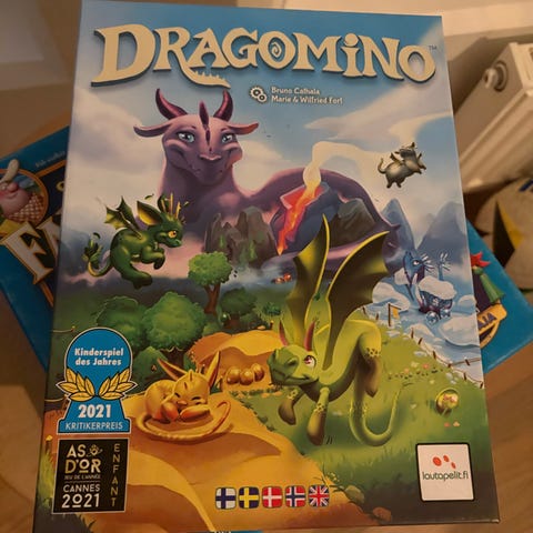 Dragomino peli. Uusi ja avaamaton paketti, yhä suojamuoveissaan.