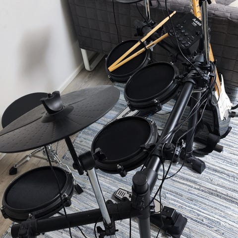 Alesis DM7X sähkörummut, jossa on useita rumpupadi- ja symbaaliyksiköitä, mukaan tulee Pearl rumpumatto, saman valmistajan jakkara ja jotain epämääräisiä kapuloita+ käyttöohjeet!