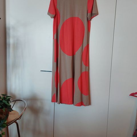Marimekon joustava mekko (28% villaa). Käy arkeen ja juhlaan. Sivuilla taskut, takana nappi niskassa.