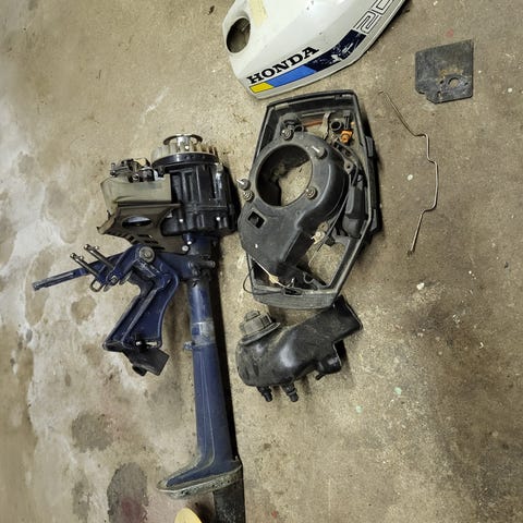 Siittä jollekin toimiva 2hv moottori.. sen verran jotain vikaa että kun kaasua vääntää yli puolen välin niin sammuu.. eli puolella kaasulla toimii moitteettomasti. Tuskin on mikään iso vika.