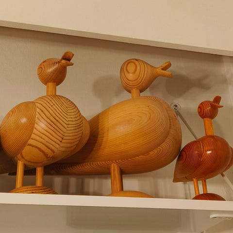 Myynnissä kaksi pientä keraamista sorsahahmoa. Pienemmän pituus noin 6cm ja isomman noin 7,5cm.