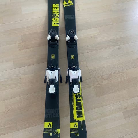 Myydään lasten Fischerin laskettelusukset, koko 128 Marker-siteineen.