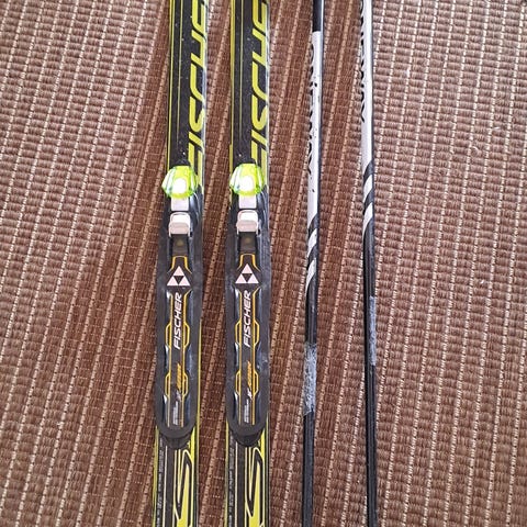 Fischer sukset + sauvat. Suksien pituus 120cm. NNN side.