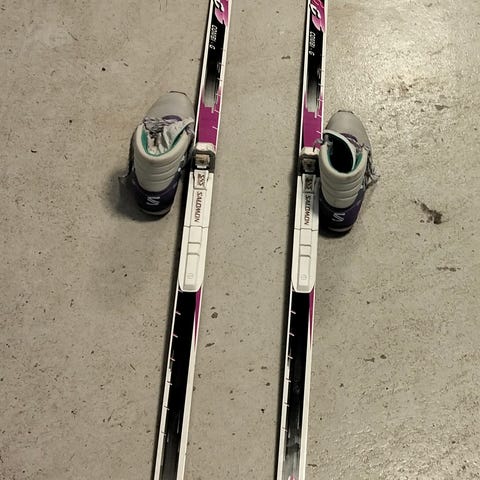 Suksien pituus 127 cm, sauvat 90 cm. Meillä oli käytössä 5-vuotiaalla.