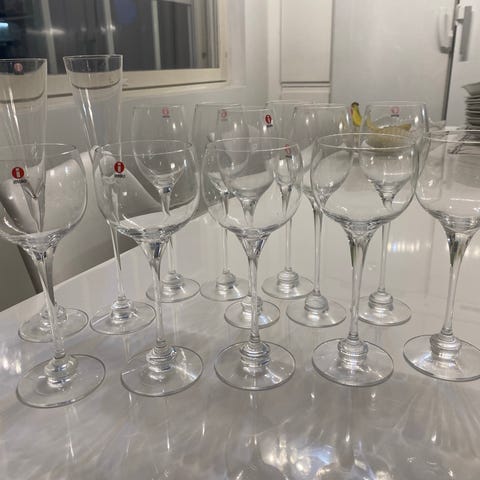 Myydään muuton alta pois käyttämättä jääneet Auroran lasit: 6kpl snapsilaseja, 3kpl liköörilaseja, 3kpl punaviinilaseja ja 2kpl samppanjalaseja. Myydään mielellään kaikki yhdessä hintaan: 130€ tai 10€ kpl.