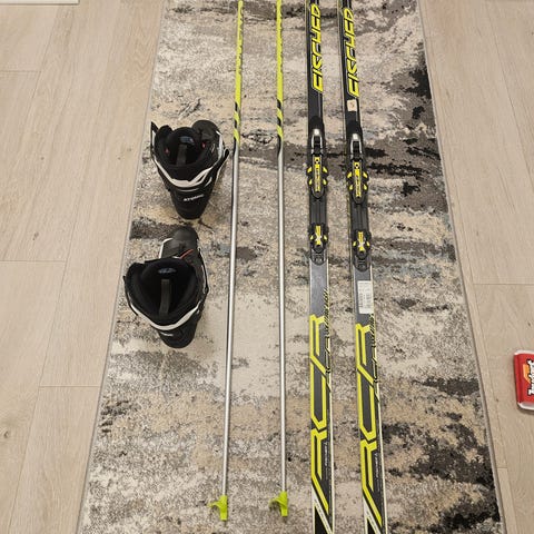 Fischer hiihtosetti sisältää sukset, sauvat ja monot. Väri musta ja keltainen. Sopii hiihtoon. Setti sisältää kaksi suksea, kaksi sauvaa ja parin monoja. Suksen pituus 140cm,sauvat 115cm,monot koko 34 NNN side