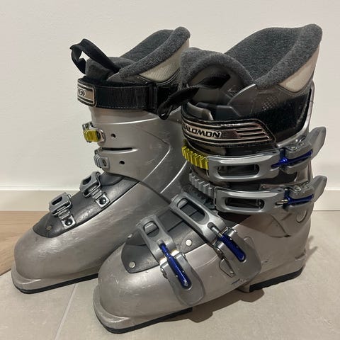 Myydään Salomonin ns. parkkimono kokoa 24. Sisäkenkä erillisellä kiristyksellä, pinnassa kolhuja, mutta mono aivan käyttökunnossa.