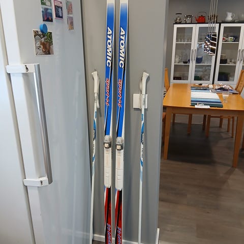 Salomon hiihtosauvat ja suksisetti sisältää kaksi paria sauvoja ja suksiparin. Varusteet soveltuvat hiihtoon ja sisältävät sauvojen kahvat ja siteet suksiin. Sauvat 120cm sukset 165cm ja monot koko 35 1/3 NNN side