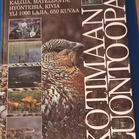 Kotimaan Luonto kirja, jossa on kuvia ja tietoa suomalaisesta luonnosta. Kirja soveltuu perheille ja luonnonystäville, tarjoaa kattavan oppaan kotimaan luonnon ilmiöihin ja eläimiin.