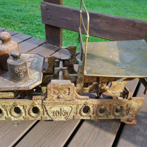 Luvian Lemlahden kansakoulun oppilasvaaka. Sopii koriste-esineeksi, esineiden jalustaksi, tai käyttöön.