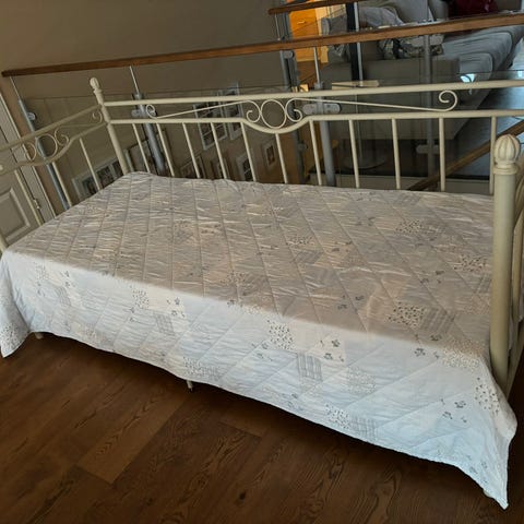 Sohvasängyn leveys 208 cm. Runko massiivimäntyä, väri valkoinen
