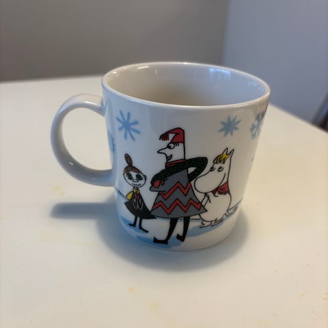 Uusi, käyttämätön muumimuki Hiihtokilpailu 2010.