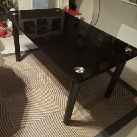 HUOM! Tuolit eivät kuulu kauppaan, ainoastaan pöytä! Myydään Jyskistä vuosi sitten ostettu ruokapöytä. Pöytään teetetty lasikansi. Kansi lähtee irti. Pöytä hyvässä kunnossa. Ehjä! Lasissa muutamia käytön jälkiä, jos valoa vasten katsoo. Pöytä on painava ja tukeva. Luovun pöydästä, sillä ei mahdu uuteen asuntoon. Pöydässä tammen värinen kansi ja valkoiset metalli jalat. Koko Leveys: 90 cm, Pituus: 150 cm, Korkeus: 75 cm.