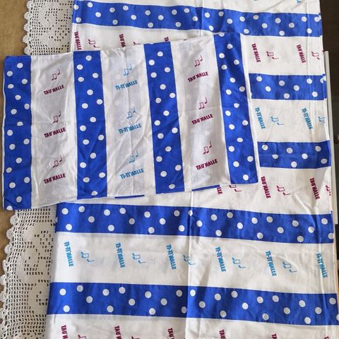 Tyynynliina hieman haalistunut, muuten ehjät ja hyvässä kunnossa