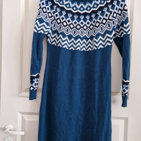 Bonprix todella kaunis, pehmeänkeltainen neulemekko, ruskeilla kuvioinneilla. Ihana kuosi ja poolomainen kaulus.