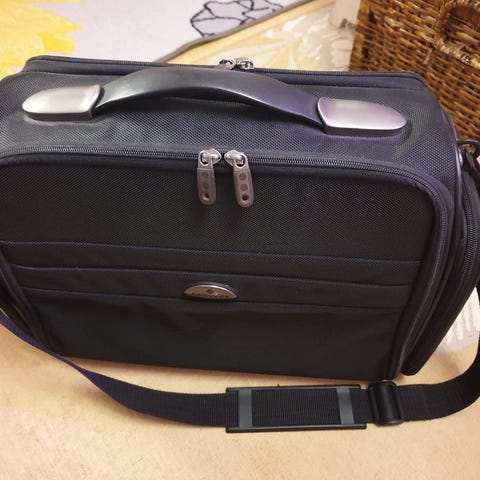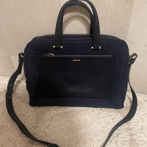 Samsonite kangas läppärilaukku naisille. Laukussa on useita taskuja ja vetoketjulliset osiot. Varustettu kantokahvoilla ja säädettävällä olkahihnalla. Väri tummansininen.