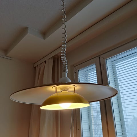 Myyn kuvien suuren, vaalean simpukankuorista tehdyn varjostimen.