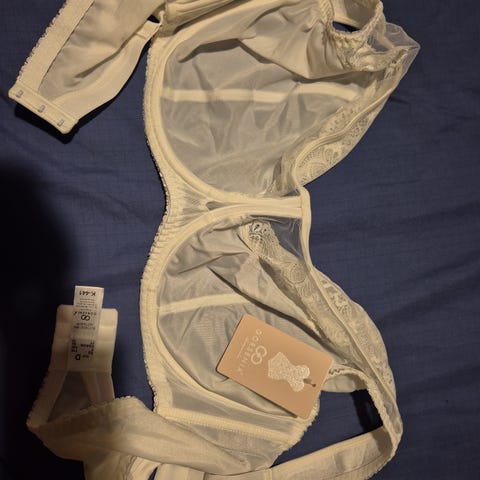 Käyttämättömät upeat Gorsenian rintaliivit koossa 90F. Läpinäkyvää kangasta. Pehmeät olkaimet.