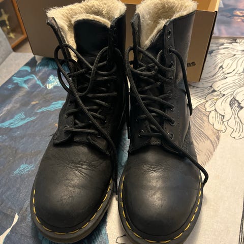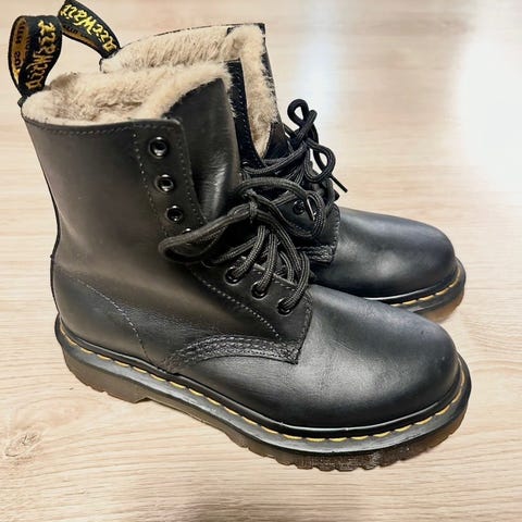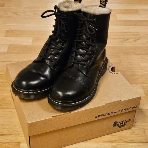 Hyväkuntoiset Dr. Martens Serena talvikengät. Kengissä on lämmin vuori, ulkokuori nahkaa. Pohjissa paljon kulutuspintaa.