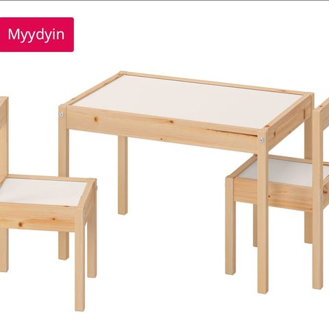 IKEA Sundvik lasten pöytä ja 2 tuolia. Valkoiseksi maalattu mänty. Runsaasti pieniä käytön jälkiä, mutta täysin ehjät. Materiaali on Ikean kalusteeksi poikkeuksellisesti puuta, joten voit hioa ja maalata kalusteet uuden veroiseksi. Uutena ovh. 59€ + 2 x 29,99€