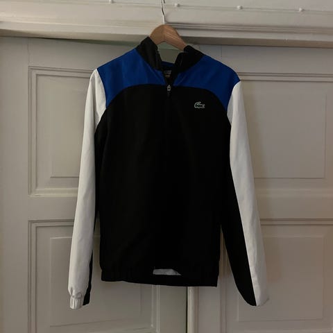 Lacoste sporttinen miesten paita, koko S, väriltään vihreä. Materiaalina 80 % puuvillaa ja 15 % polyesteriä. Takissa on valkoiset ja mustat raidat olkapäillä ja helmassa, tuote on erittäin hyvässä kunnossa !🙂