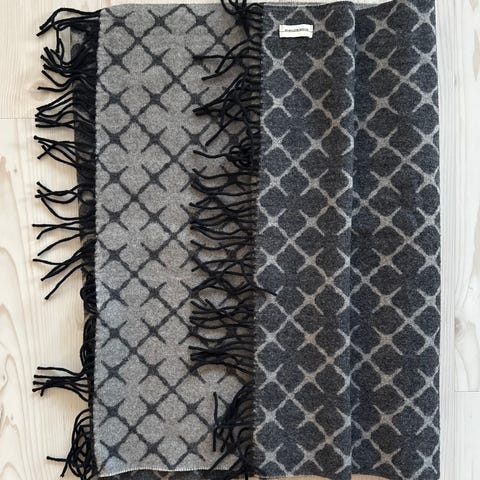 Käytetty shaalina muutamia kertoja, pesty kerran villaohjelmalla ja silitetty.