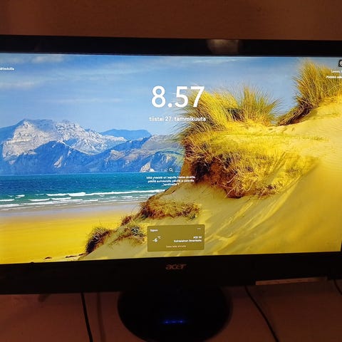 ProCaster näyttö 55". Käytetty televisiona Hdmi:llä Elisa viihteellä. Ei antenni paikkaa. Pieni viiva tullut kuljetuksessa oikealle (näkyy kuvissa). Seinäteline mukaan jos haluaa, ei ole jalkaa. Tällä hetkellä vielä kiinni seinässä.