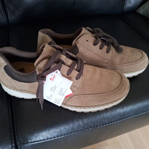 Siniset farkun näköiset kengät. Jonkun verran käytetty. Kokoa ei näy, mutta noin 44-45. Pohjallisen pituus n 29cm.
