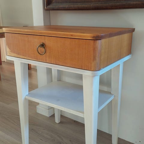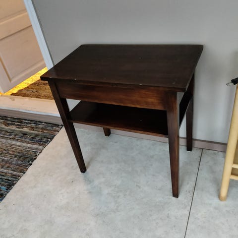 Ruskea puunvärinen retro pöytä 50-60 luvulta.