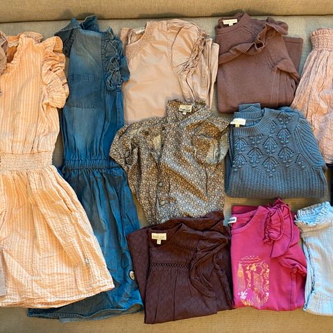 Myydään Pimp de Lux vaatepaketti kokoa 122-140. Yökkäri, kolme frillahiha paitaa, pitkähihainen ribbi paita ja toppi. Muut kokoa 122/128 paitsi vaal.pun. jäätelöpaita 134/140. Kaikki ehjiä ja hyväkuntoisia, sudenkorento paidassa selässä tahraa, jota ei ole yritetty poistaa.