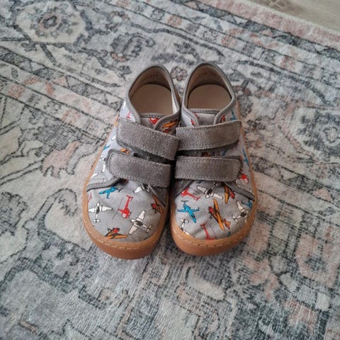 Froddo pj-lenkkarit koko 28. Kahdella käytetty, ostettu uutena. Väri haalentunut, tarrat pitää ja on ehjät. Hyvät kengät seuraavalle!