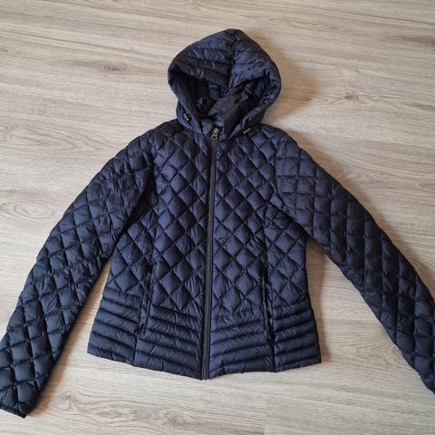 Siisti tummansininen tyköistuva 36-koon kevyttoppatakki