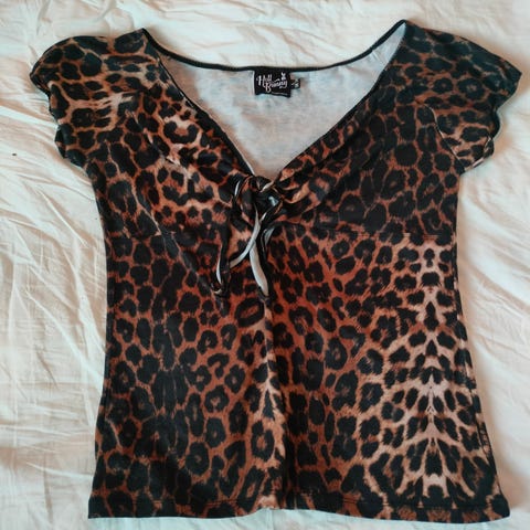 Hell Bunnyn leopardipaita lyhyillä hihoilla ja off-shoulder-pääntiellä. Koko L. Koko- ja materiaalitiedot kuluneet lampuista, mutta pehmeää trikoota pienellä joustolla. Ok siisti, käytetty kunto. Uutena ostettu, yhdellä käyttäjällä ollut.