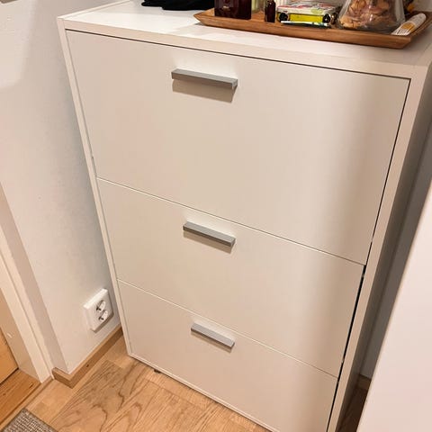 2kpl Ikean valkoisia kenkäkaappeja. 10e/kpl. Nouto Pälkäneeltä.