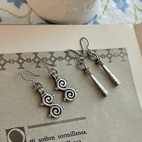 Käytössä olleet Kalevalan hopeiset Pahanpiiska -korvakorut. Leimat: kk ja 925. Rasiaa ei ole. Pakettiautomaattilähetys Manner-Suomeen 6 euroa, josta saa lähetyksen seurantanumeron. Nouto Kuopiosta keskustasta. En käytä ToriDiiliä.